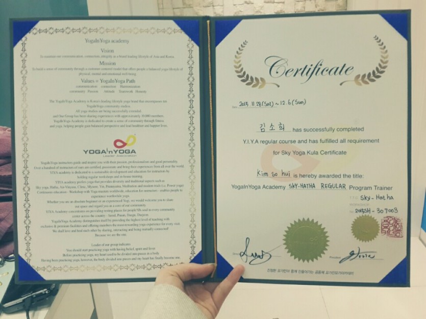15학번 김소희 학우의 요가자격증 획득